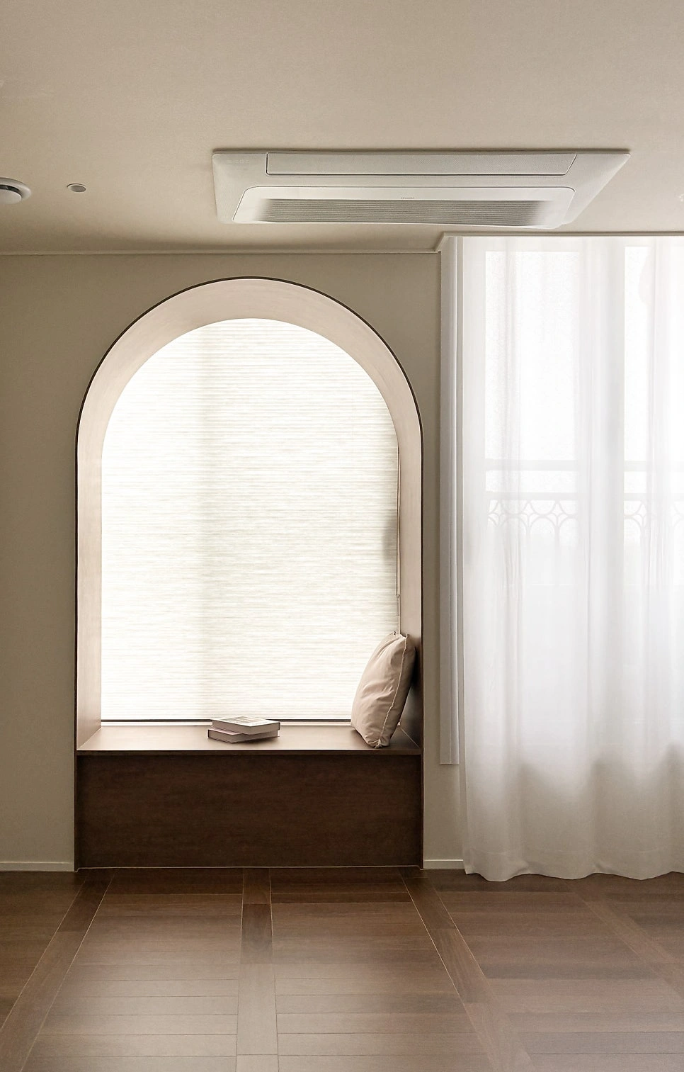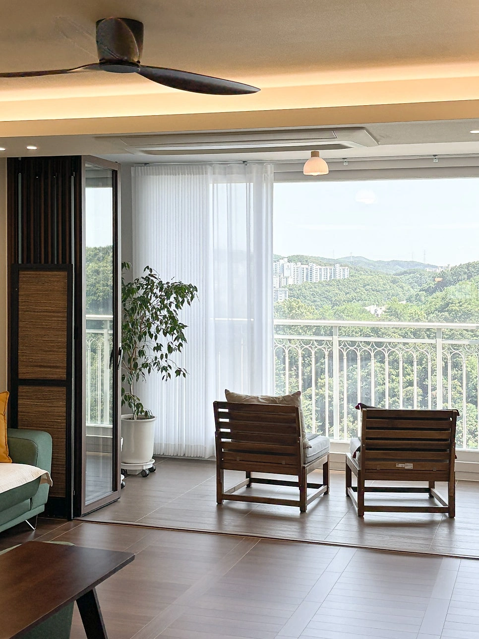 대청마루 패턴과 그린 톤의 조화, 비움의 미학으로 완성한 도심 속 휴식처